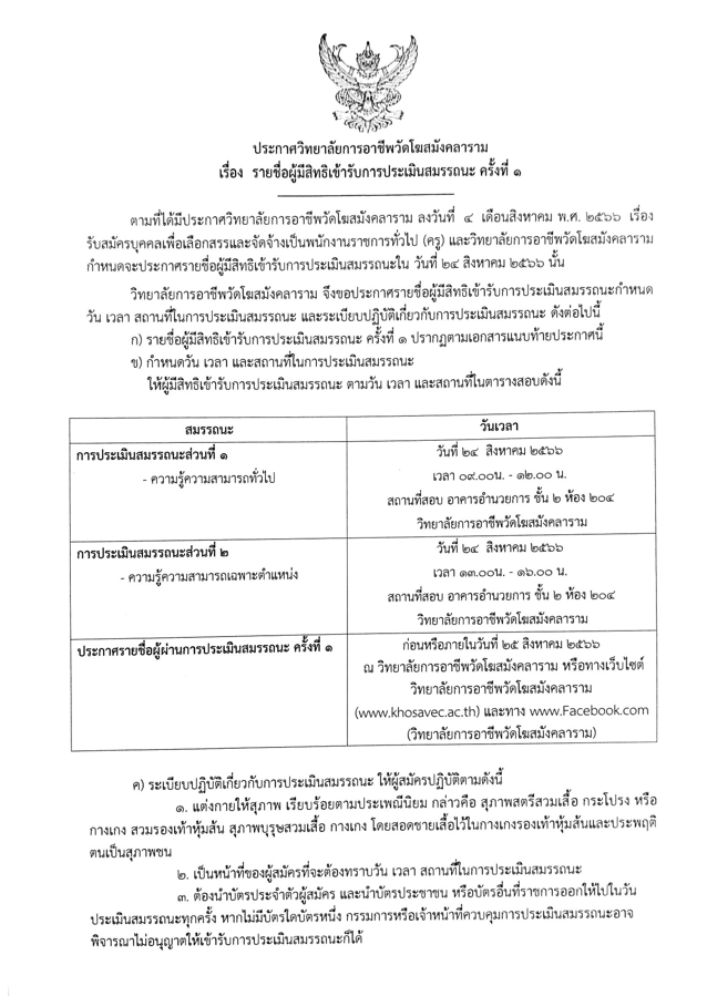 22/8/2566 ประกาศรายชื่อผู้มีสิทธิ์สอบพนักงานราชการครู