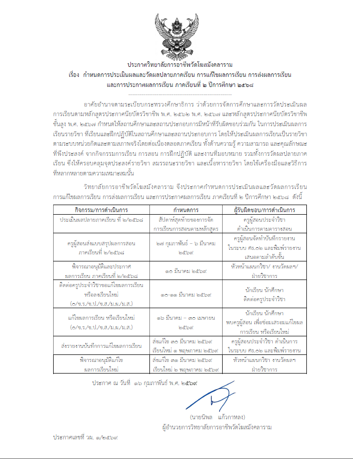 2569-2-16 Announcement of the Evaluation and Final Examination Schedule for Semester 2/2025